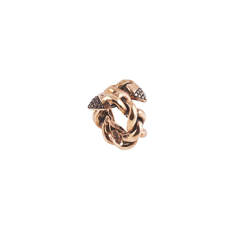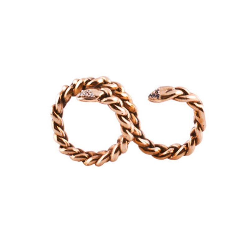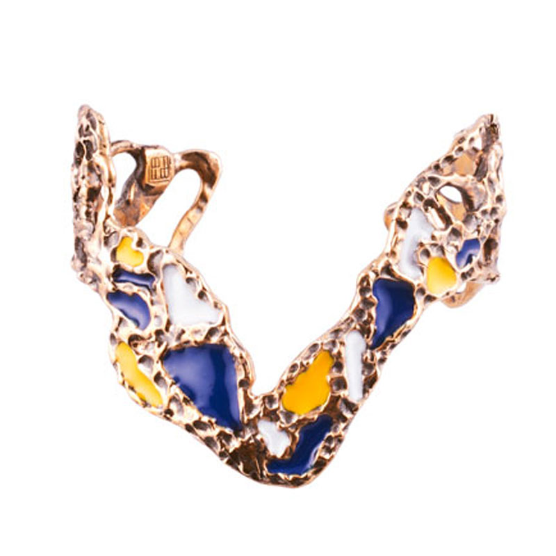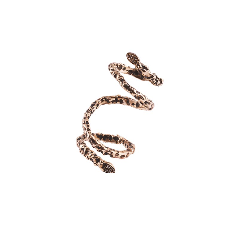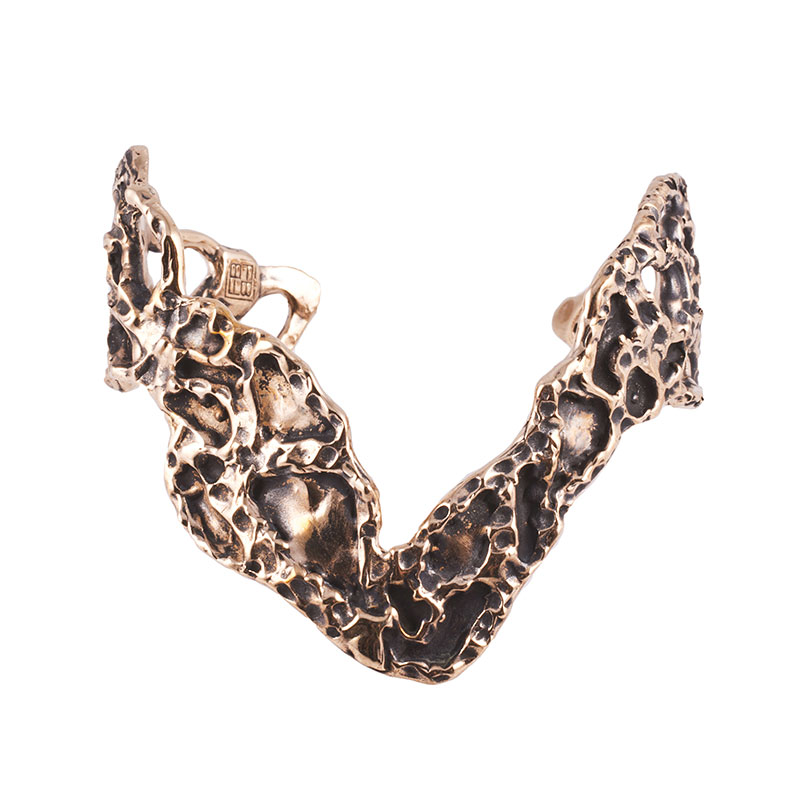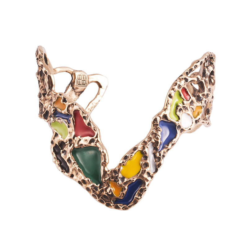 Microcosmi selvatici e lussureggianti, rêveries di gusto esotico e cenni Déco per “Creepers”, la collezione FW 14.15 di Flaminia Barosini. Una collezione dall’estetica composita che mescola elementi organici e cromie cangianti dal forte impatto visivo. Un rigoglio fatto di intrecci, fibre e steli che ricorre nei chocker dalle linee essenziali, negli originali ear cuff, nell’iconico anello mustache rivisitato attraverso nuove trame e smalti policromi dai toni squillanti mentre i bangle multifilo avviluppano i polsi come sottili liane d’edera.