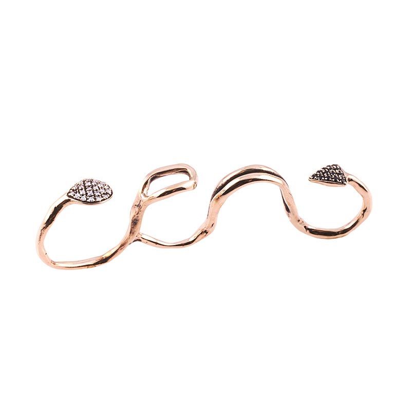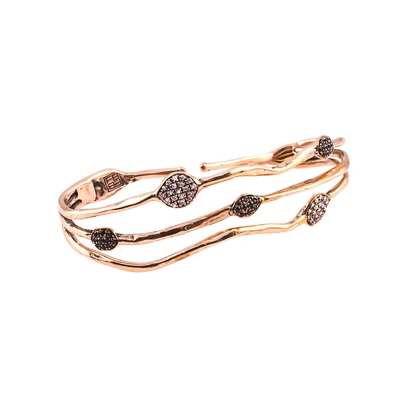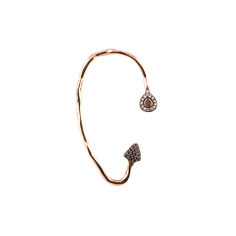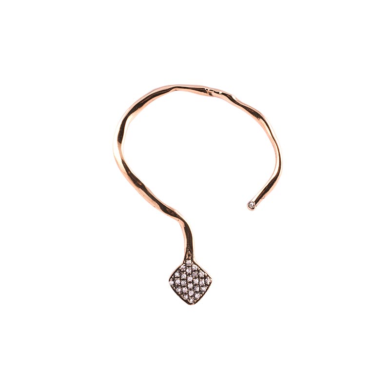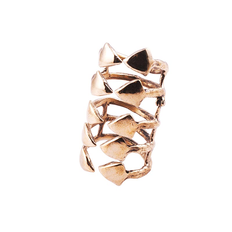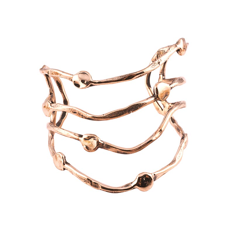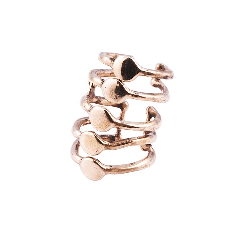 Sinergie complesse, interconnessioni e flash cromatici per “Synapses”, la collezione SS2016 di Flaminia Barosini. Le trame liquide del bronzo delineano un immaginifico trattato neuroestetico che muove dalle linee pure dei bangle multifilo per giungere alle ramificazioni dendritiche dei mono orecchini. Un linguaggio fluido che si estende anche agli ear cuff di matrice essenziale, agli anelli a motivi concentrici e ai chocker semirigidi: iterazioni di segmenti geometrici illuminate da impulsi luminosi e inserzioni di colore saturo.