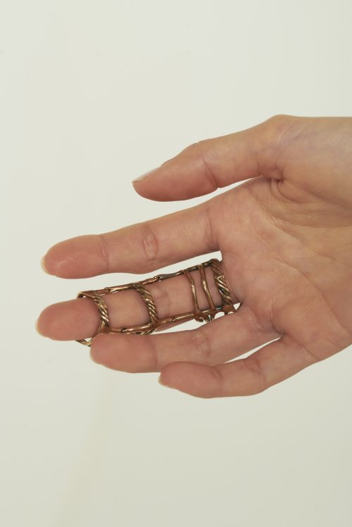 Anello in bronzo realizzato a mano, dotato di snodi per piegare comodamente il dito.