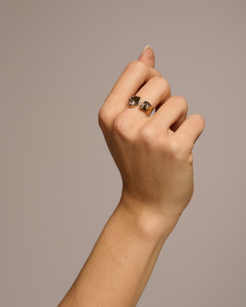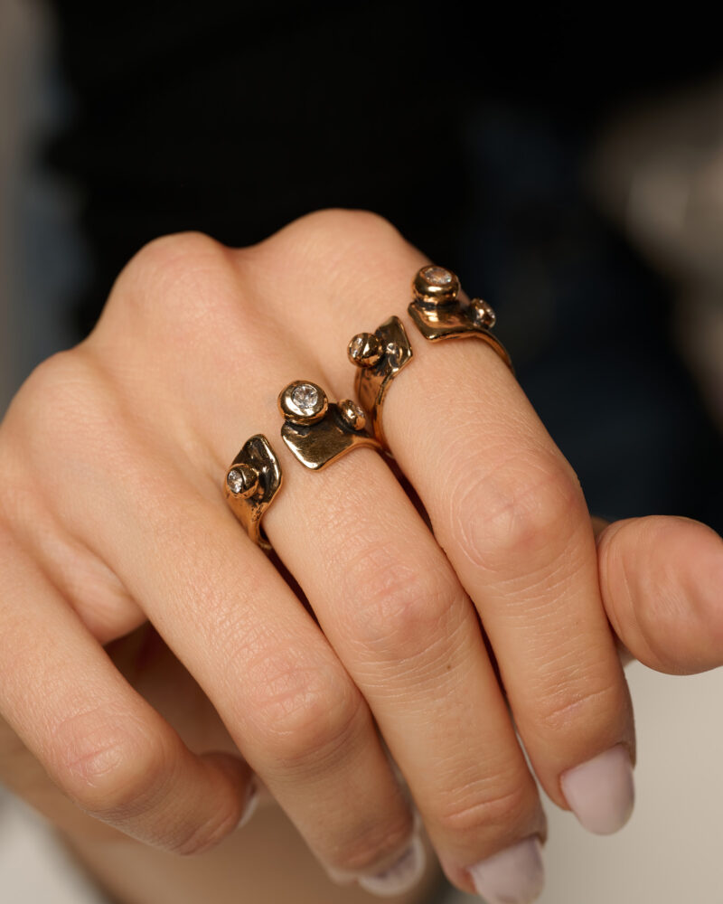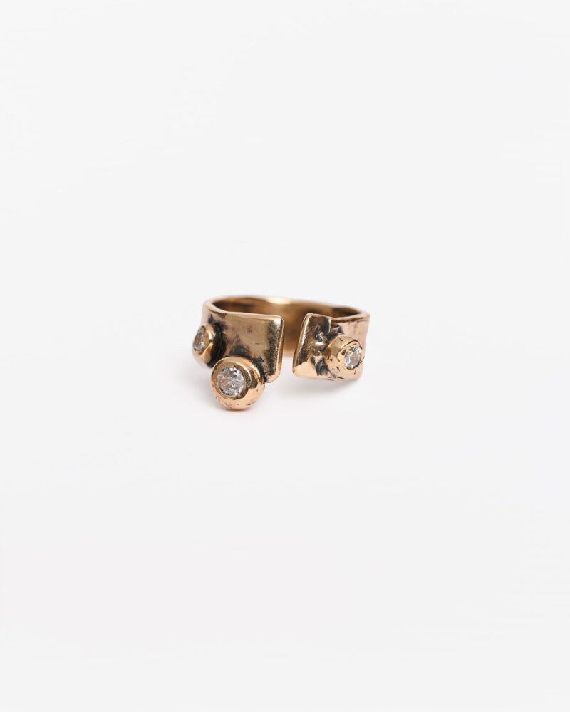 Anello in bronzo realizzato a mano con la tecnica della fusione a cera persa, la pietra è uno zircone .