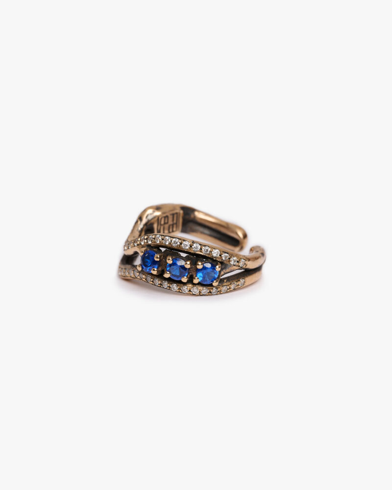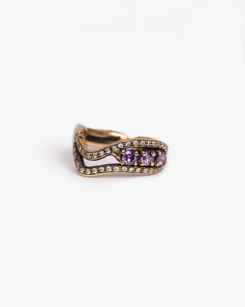 Anello in bronzo realizzato a mano con la tecnica della fusione a cera persa, le pietre sono zirconi .
