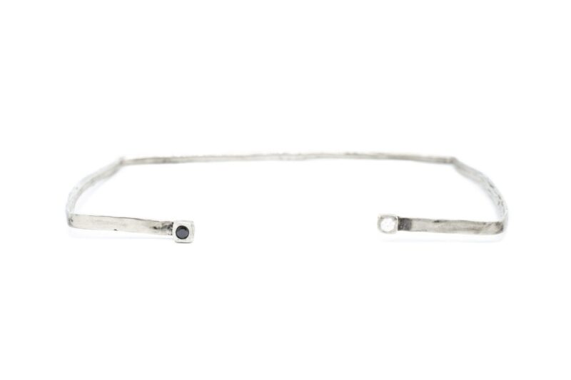 Collana in argento realizzata a mano con 1 zircone nero e 1 zircone bianco frontali sulle estremità in rilievo.
